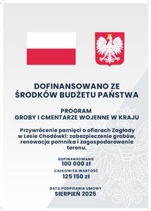 Przywrócenie pamięci o ofiarach Zagłady w Lesie Chodówki: zabezpieczenie grobów, renowacja pomnika i zagospodarowanie terenu.