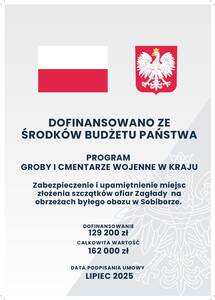 Zabezpieczenie i upamiętnienie miejsc złożenia szczątków ofiar Zagłady na obrzeżach byłego obozu w Sobiborze.