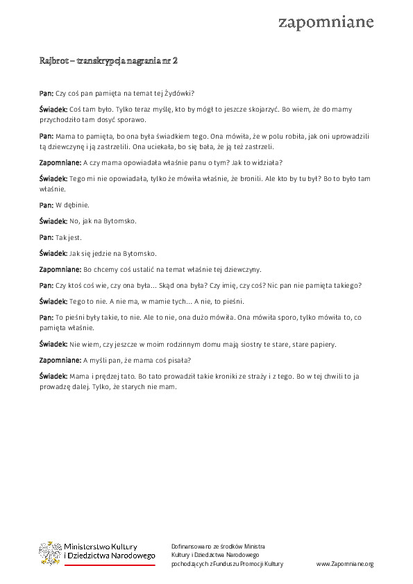 Nadal poszukujemy informacji nt. tożsamości żydowskich ofiar w Rajbrot. Jeżeli wiesz coś więcej, napisz do nas na adres mailowy: fundacjazapomniane@gmail.com